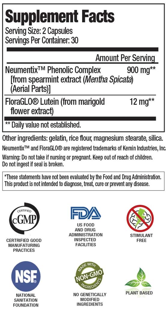 This patented spearmint extract contains proprietary polyphenols clinically shown to increase working memory, multitasking, and sleep quality.