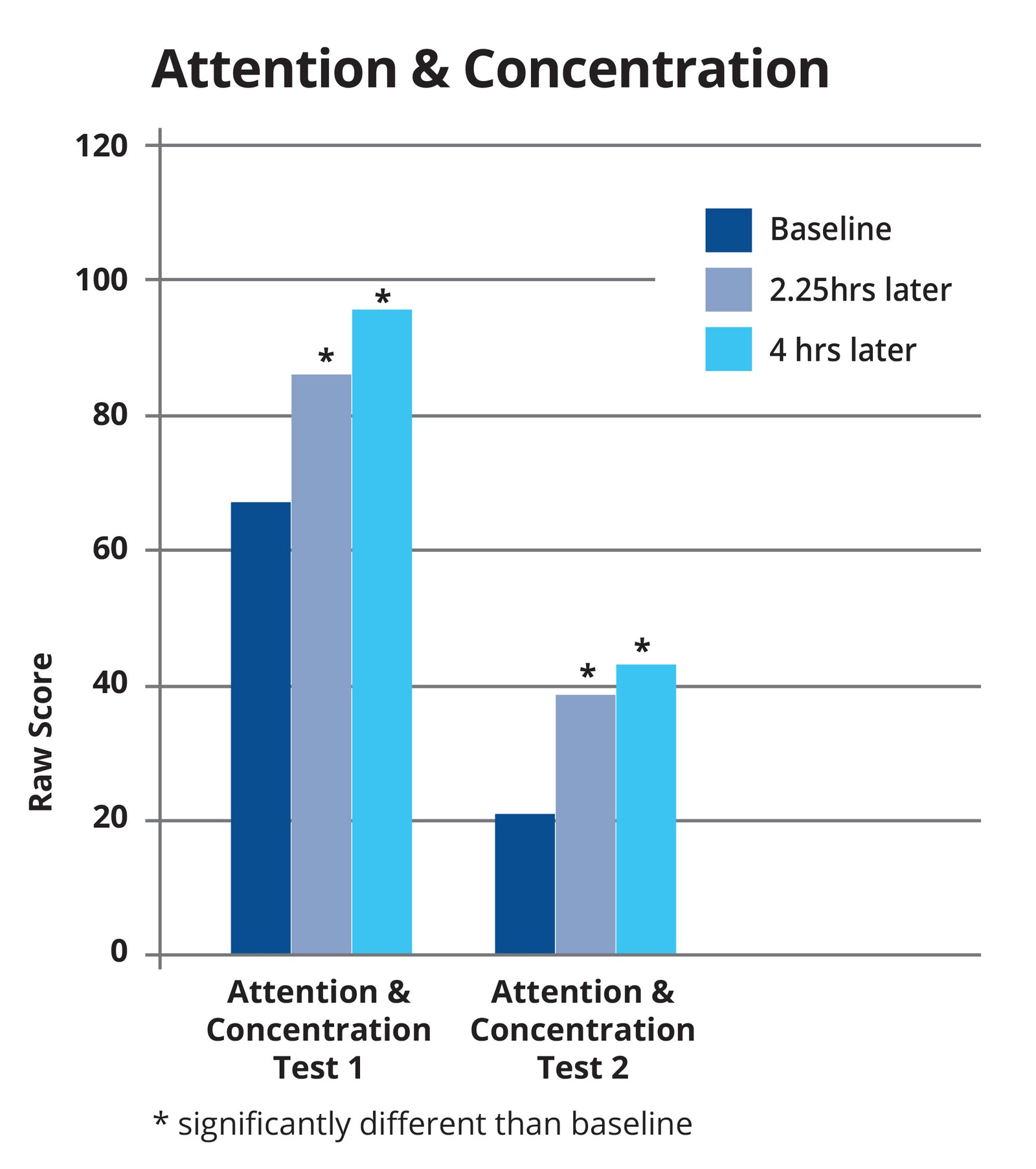 In the first Neutein memory trial, the ingredients found in Neutein significantly improved attention and concentration at 2.25 hours and 4 hours after consuming. Subsequent research showed that with daily use, the ingredients in Neutein also improve sustained focus.